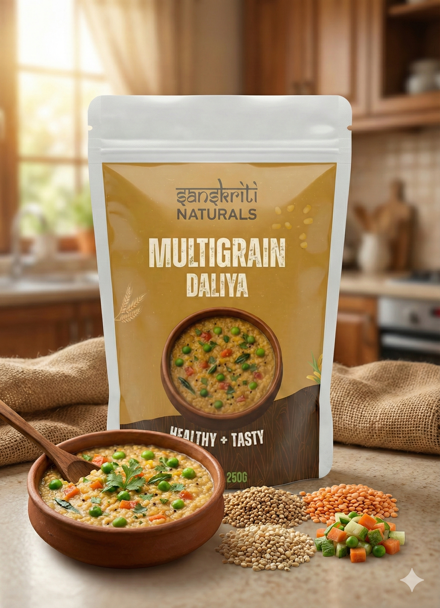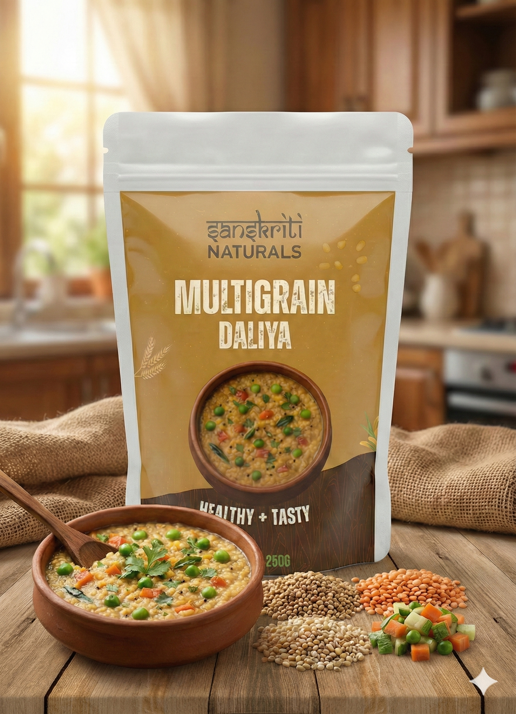 This Organic Multigrain Daliya features a wholesome blend of grains with a traditional cracked texture. Made with organic ingredients, it’s ideal for regular cooking while preserving natural taste and authenticity.
